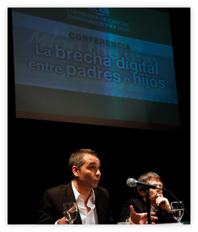 Izq. Conferencia “La brecha digital entre padres e hijos. Uces. Abajo Izq. Encuentro Con su Alteza el Príncipe Felipe. Der. Conferencia Resp. en Internet UBA.